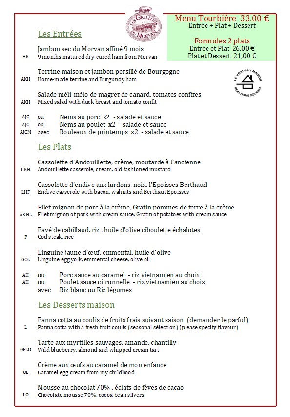 Réservez vos menus pour le vendredi, samedi, dimanche Tel : 03 86 84 51 43